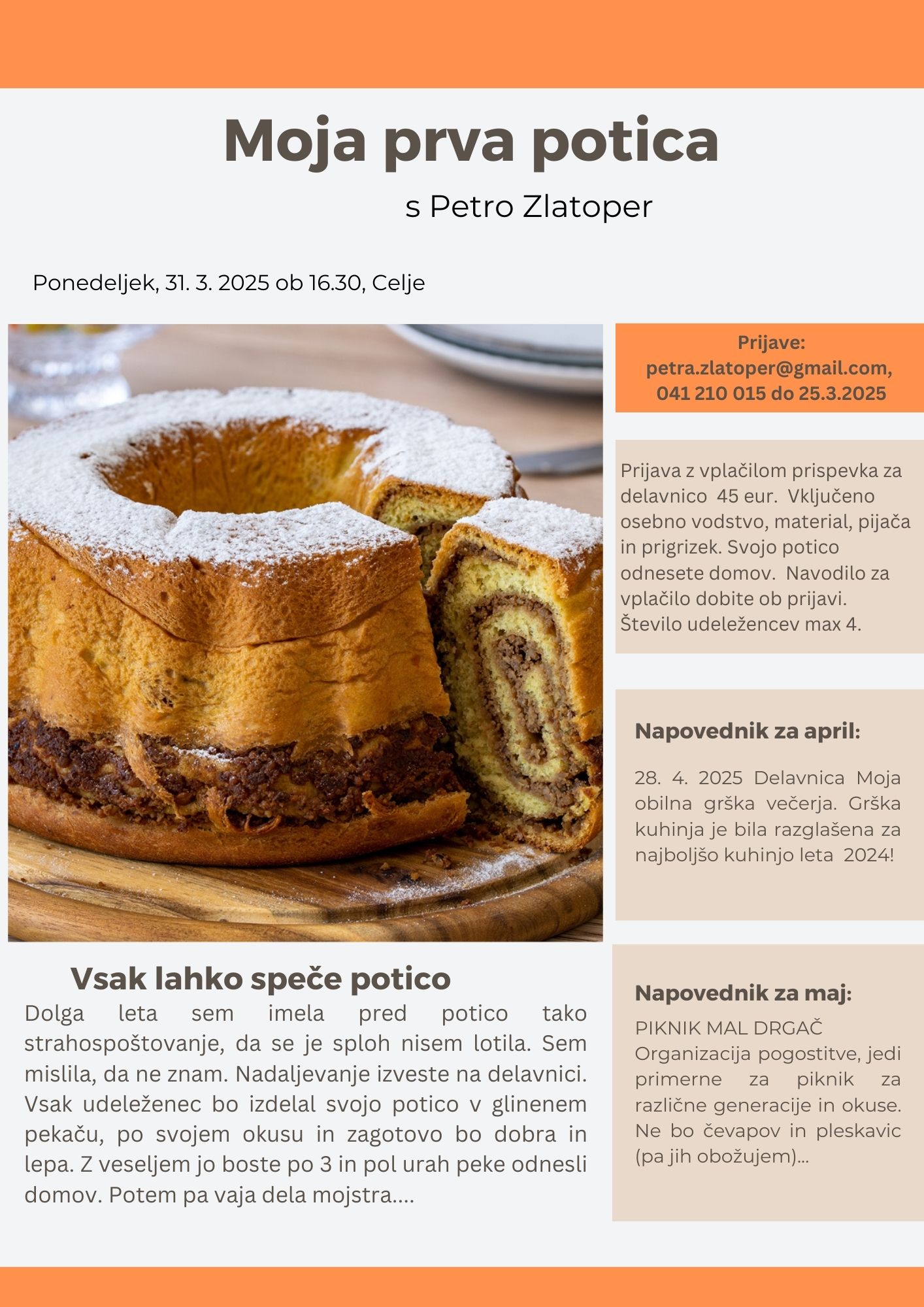 KULINARIČNA DELAVNICA GRŠKE KUHINJE, 16. 10. 2025 ob 16.30 v Studio Fržek, Brezovica pri Ljubljani. Pripravili bomo 3-4 predjedi, glavno jed in sladico. Predhodno kuharsko…