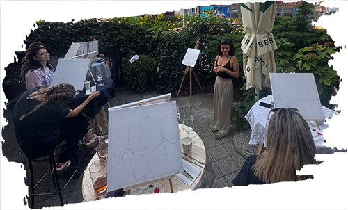 Udeležence korak za korakom vodimo skozi slikarski proces, pri čemer vsak zase ustvari svojo lastno sliko, ki jo na koncu odnese domov.
