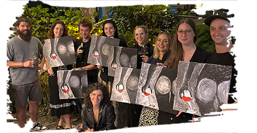 Za člane vaše ekipe zagotavljamo sproščeno vzdušje ob druženju ustvarjalnosti in smeha. Ne potrebujete nobenega umetniškega znanja, vse se dela vodeno in brez ocenjevanja.